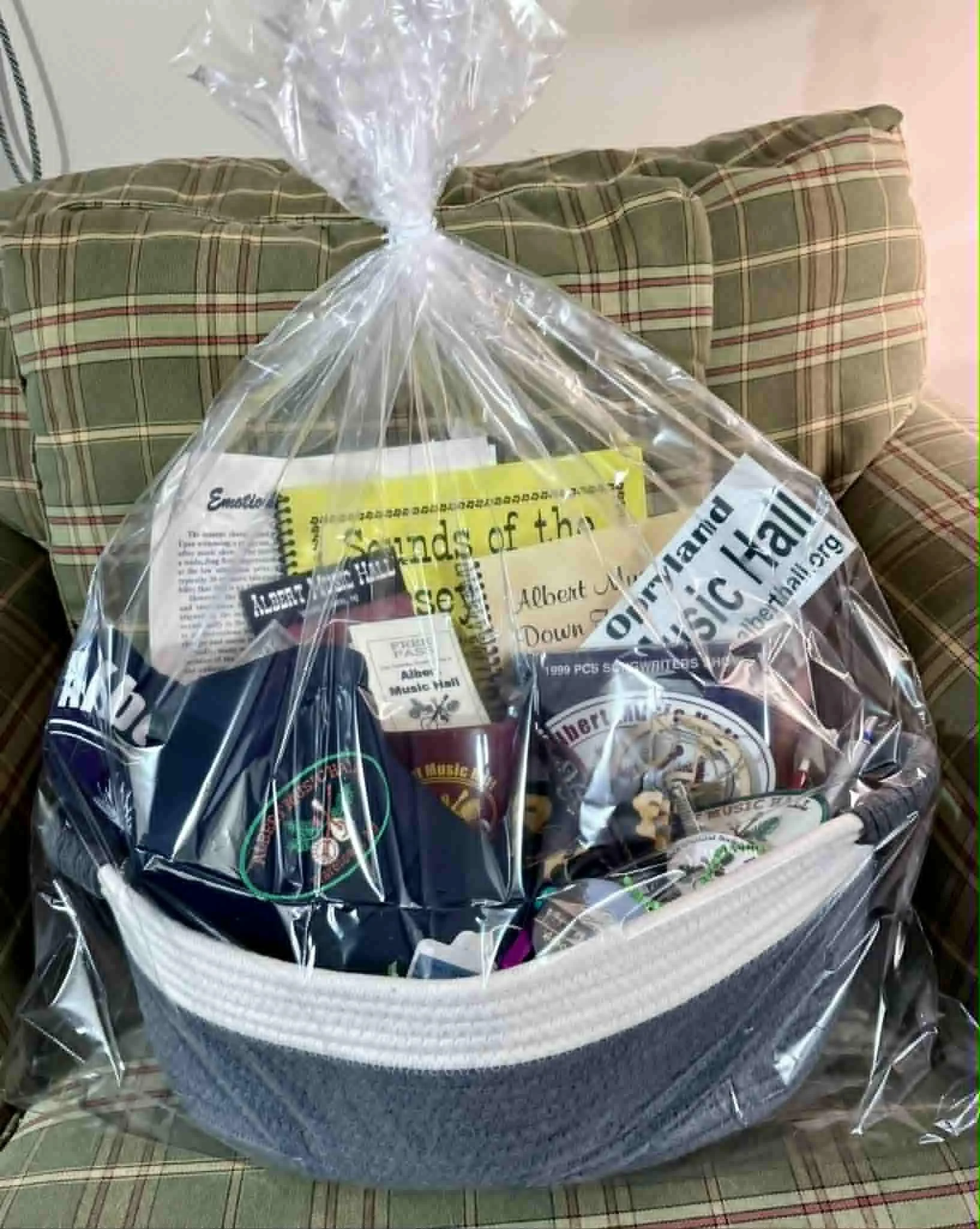 Two Albert Hall (NJ) Tickets and Swag Baskets - Donated by the Pinelands Cultural Society & Danielle & Chrissy Marrone. - Each includes 4 show passes and an assortment of Albert Hall swag including a T-shirt, baseball cap, mug, the Albert Hall music book, Albert Hall cookbook, CDs, stickers, car magnet, pins, keychains and more. Each basket retails for over $160. Check out our site: https://www.alberthall.org/